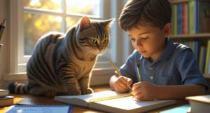 - Reinforce the child’s focus when studying near the cat
